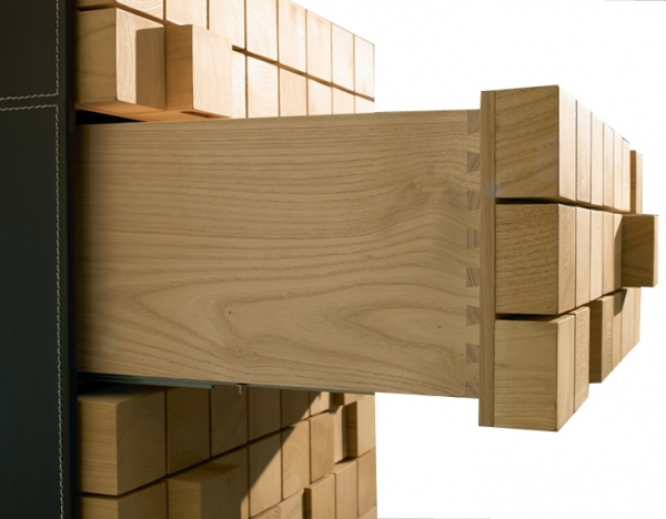 Voici deux nouveaux petits éditeurs français découverts ce printemps, Kann Design et TurriniBY. Alors que les collections de Kann sont très typées 50’s, celles de TurriniBY sont beaucoup plus ancrées dans la modernité. Chez ces deux éditeurs, une collection en décalage avec leurs autres créations se distingue : Recycled chez Kann et Eko chez TurriniBY. Dans les deux cas, on est en présence d’un beau travail sur le bois brut. Jeu sur les tonalités de bois chez Kann, jeu sur le relief chez TurriniBY. Bibliothèque modulable, bureau et commode chez Kann, chiffonier, lit et… Commode chez TurriniBY.